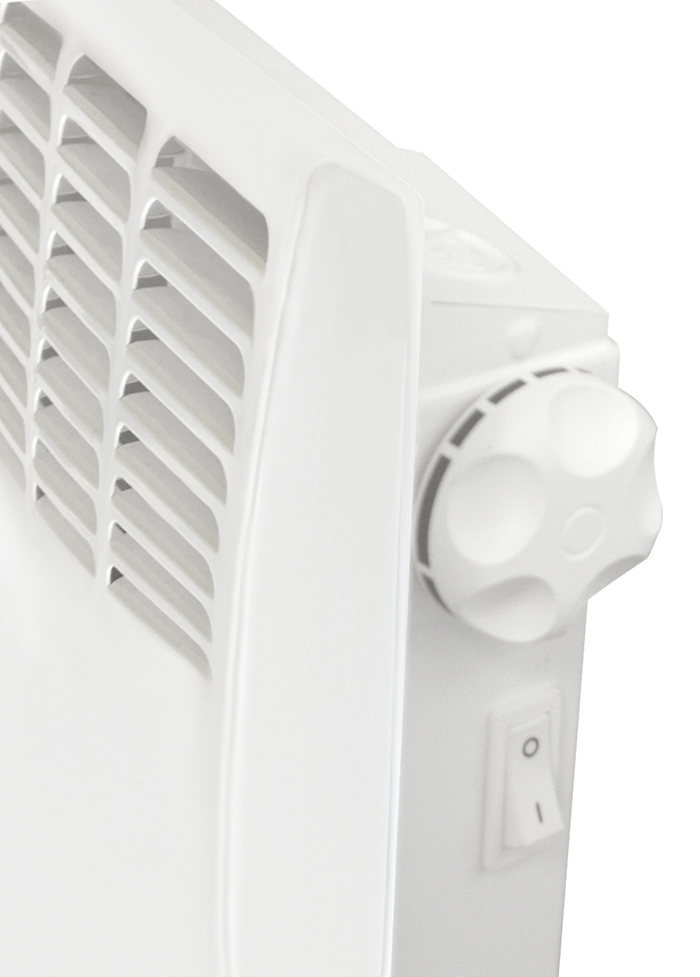Конвектор оснащен надежной механической панелью управления, позволяющей настроить комфортную температуру нагрева воздуха в помещении, а также включить и выключить конвектор.