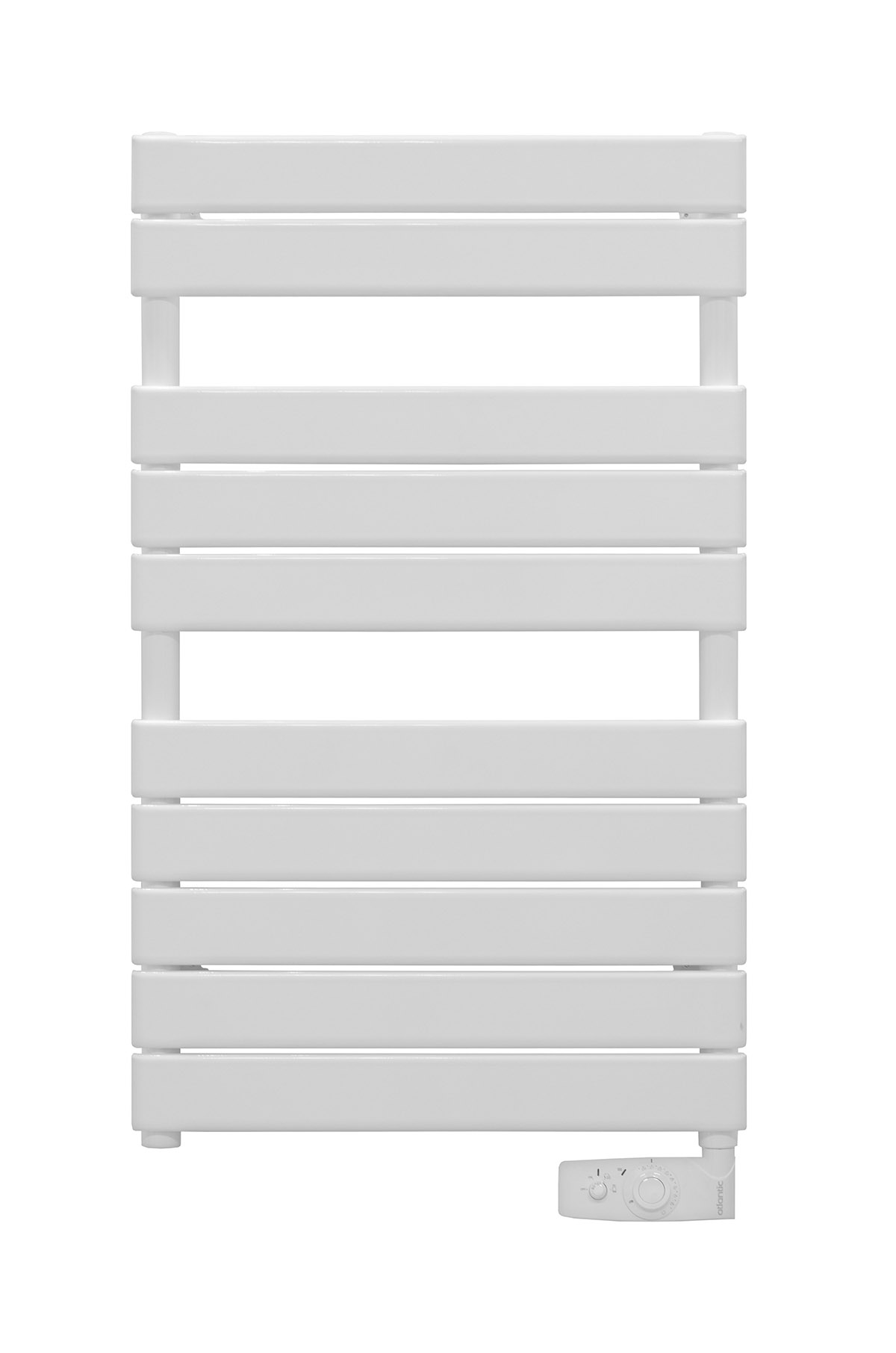 Панель управления для изменения параметров находится в нижней части устройства. В ассортименте представлены белый и черный полотенцесушители (антрацит). Модели также отличаются мощностью — 500 и 750 ватт.