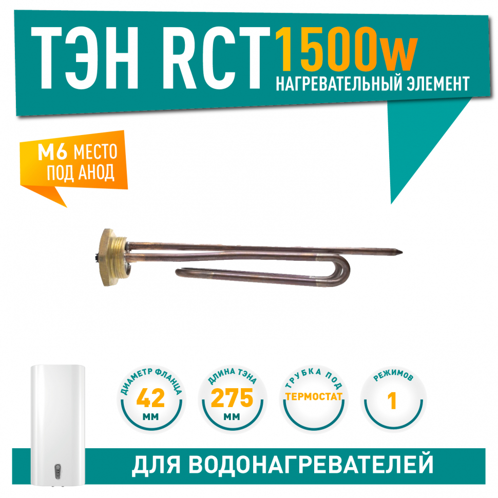 Нагрев. элемент RCT 1500Вт резьба D42мм. M6 арт.20296