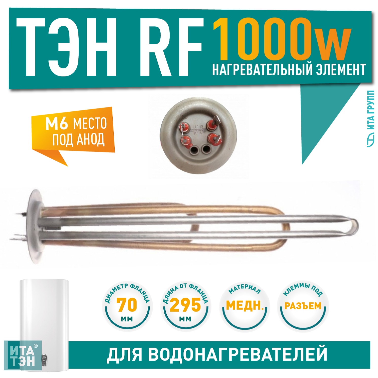 Нагрев. элемент RF70 1000 Вт.(0,75+0,25кВт), М6 арт.20109