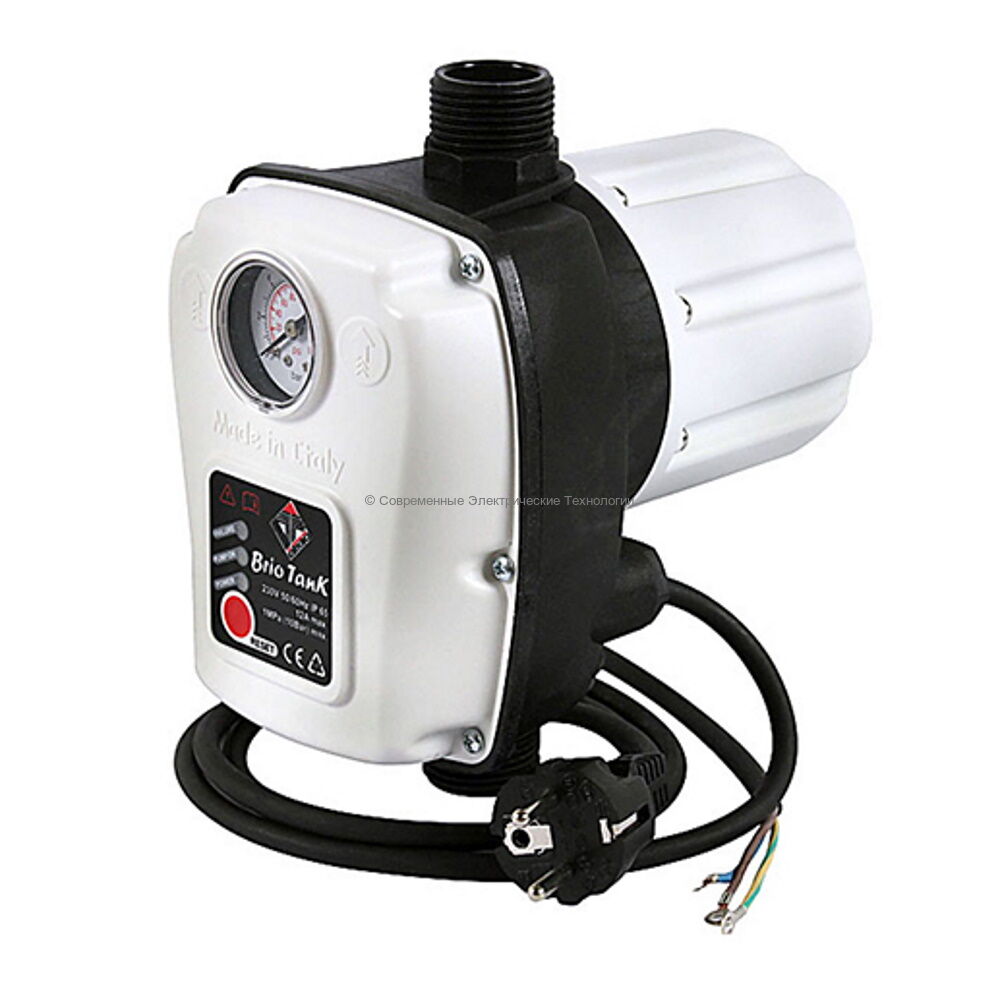 Реле давления Italtecnica BRIO TANK — блок автоматики для управления однофазными насосами в системах бытового водоснабжения. Обеспечивает автоматическое включение/выключение насоса и защищает его от «сухого хода» и других аварийных режимов.
