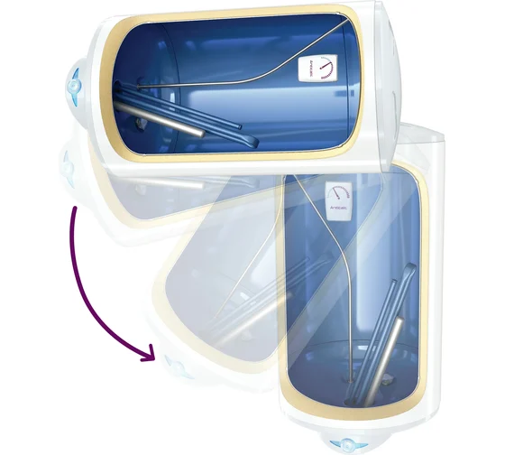 Нагревательный элемент Anticalc работает при низкой температуре поверхности, что ограничивает накопление известковой накипи. Модельный ряд включает в себя водонагреватели емкостью от 50 до 150 литров.